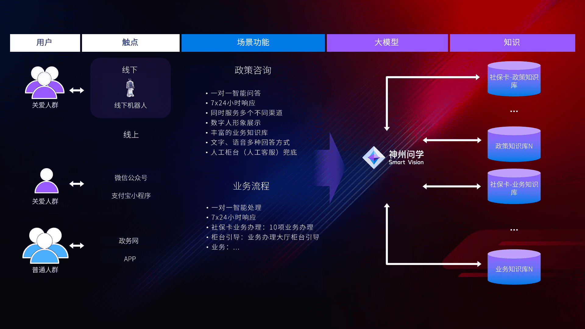 • 线上线下全覆盖:线上提供微信公众号、、、支付宝小程序、、、政务网、、、、app多种渠道,,,与线下机器人形成完整服务体系。。